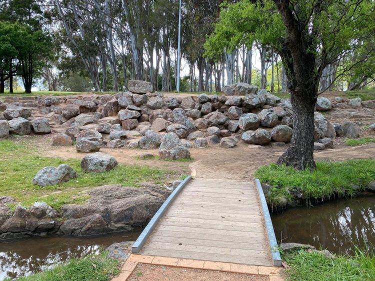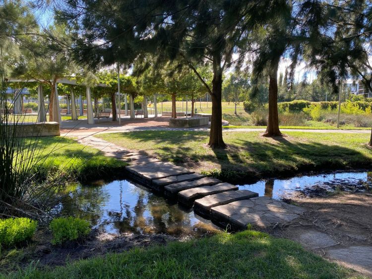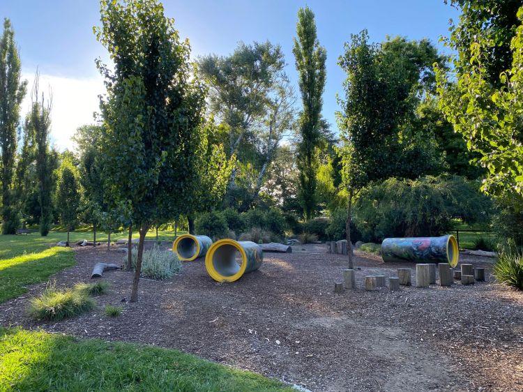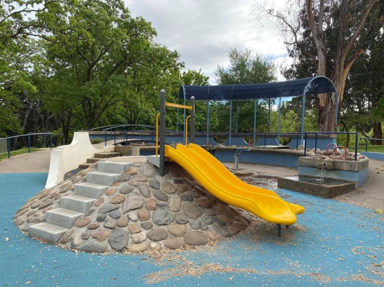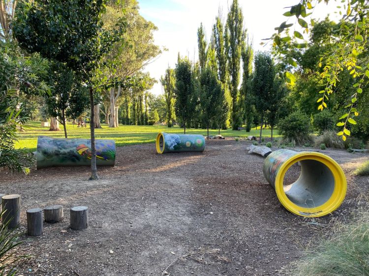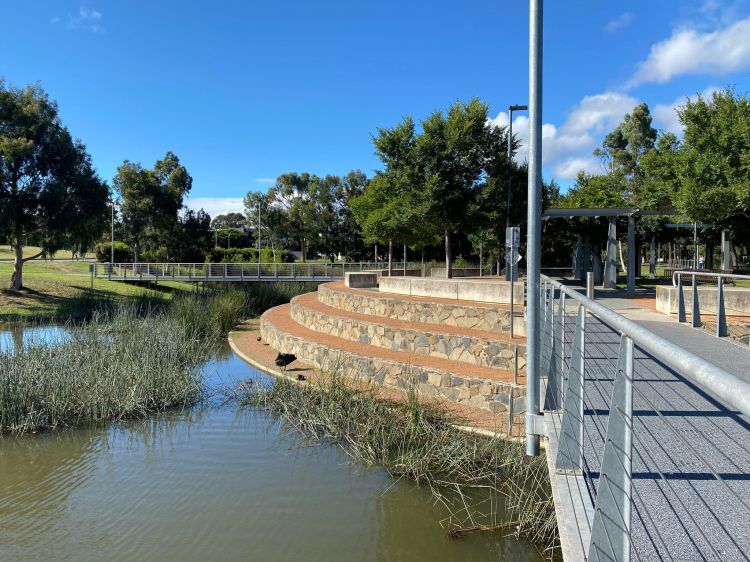 | Also Available – Nature Play, Mini skate ramp nearby, bins, water tap, bubbler and toilets (over the water ways footbridge). |