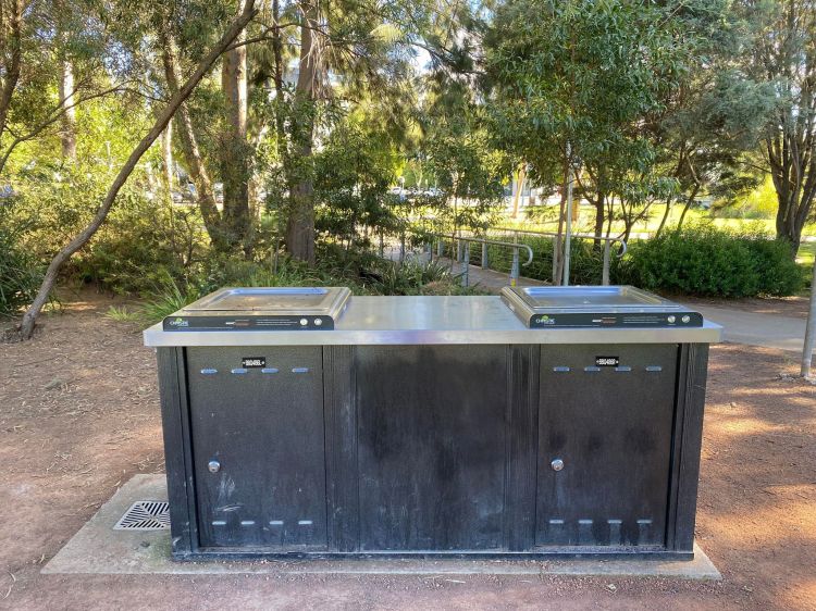 | BBQs 2 BBQ Areas – 1 dual top BBQ75 , both cooktops facing towards carpark (near DNA Art Instalment By Jonathon Leahey) – 1 dual top BBQ76, both cooktops facing towards Lake Burley Griffin. |