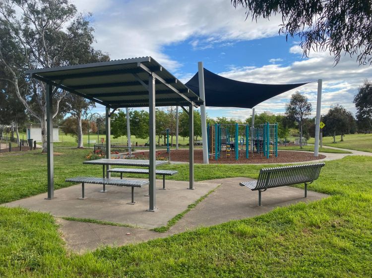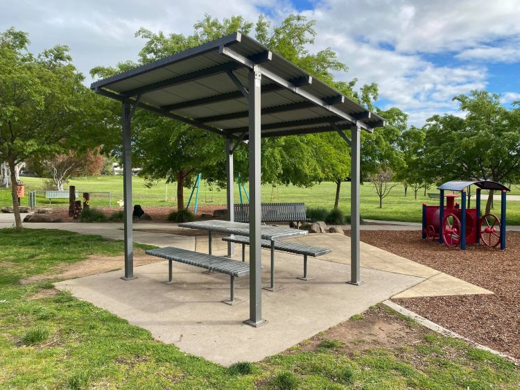 | Picnic Tables – 2 with BBQ under shade shelter. – 2 on grass under individual shade shelters next to playground. |